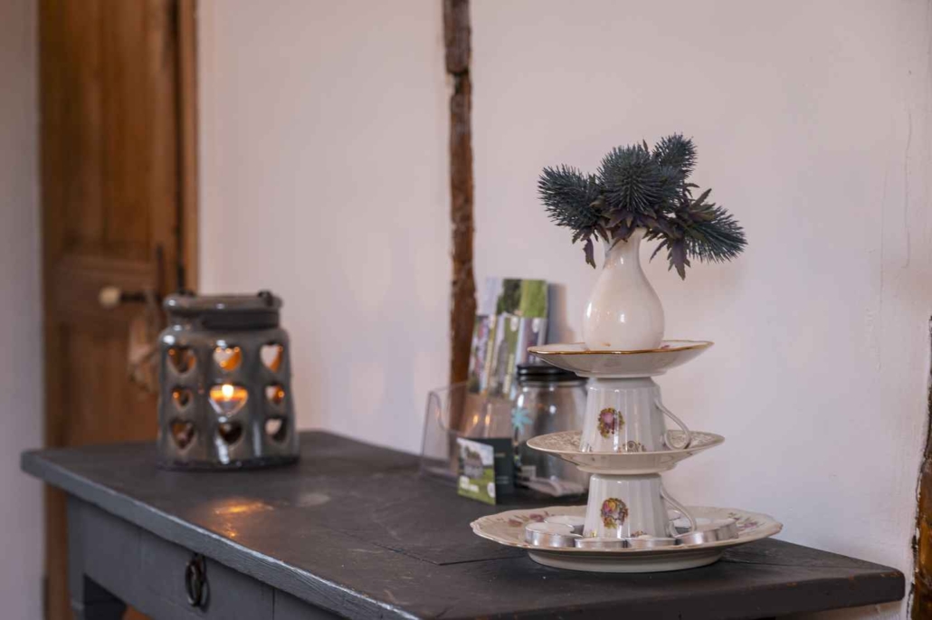 Om optimaal te kunnen genieten van het buitenleven is er in het souterrain van het Eper Holt Hoes een tweede keuken ingericht. Deze keuken bereikt u via een trap in de hal. De landelijke keuken is wederom voorzien van een 4-pits keramisch fornuis en een 4 persoons eettafel. Vanuit de keuken heeft u rechtstreeks toegang tot de tuin en het terras. Op het terras staat een buitentafel met een grote parasol en een stenen barbecue. Verder zijn er twee ligstoelen aanwezig. Doordat de tuin volledig afgeschermd is met een grote heg zit u heerlijk beschut en is de tuin hierdoor uitermate geschikt om tot in de late avonduurtjes te barbecueën en te genieten van uw gezelschap.